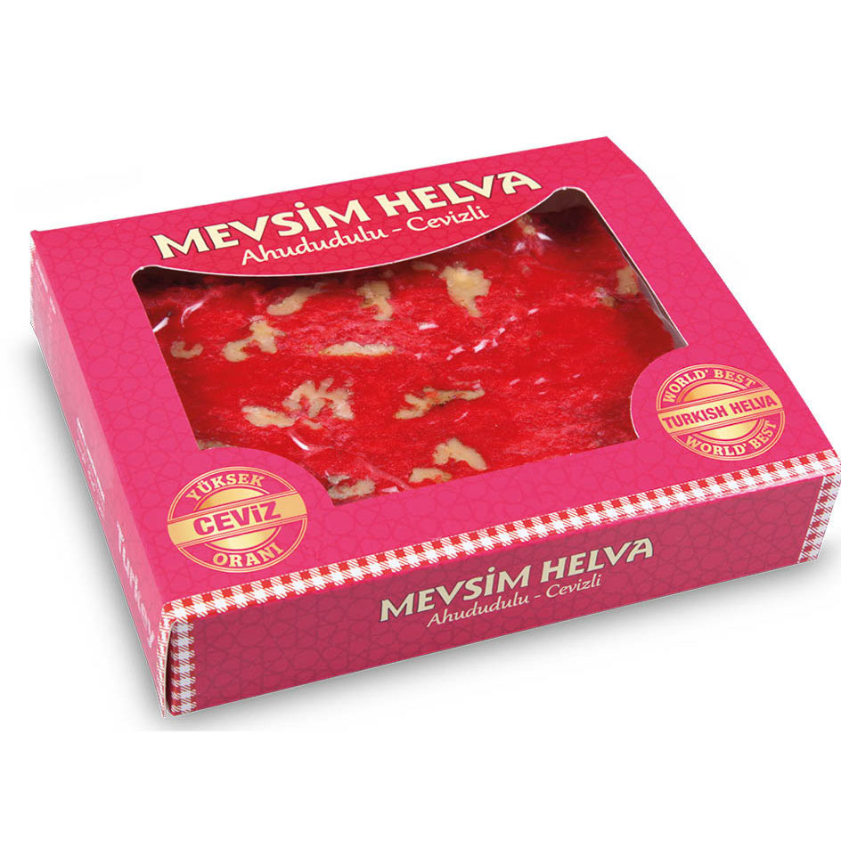 Seasonal Halva (with Raspberry and Walnut) is a special twist on traditional tahini halva, enriched with the fresh and natural flavors of the season. The mildly tangy taste of raspberry combined with the crunch and richness of walnuts creates a unique harmony with sesame paste. It’s a wholesome snack and a refined dessert option for special occasions. Made with all-natural ingredients, free from additives.