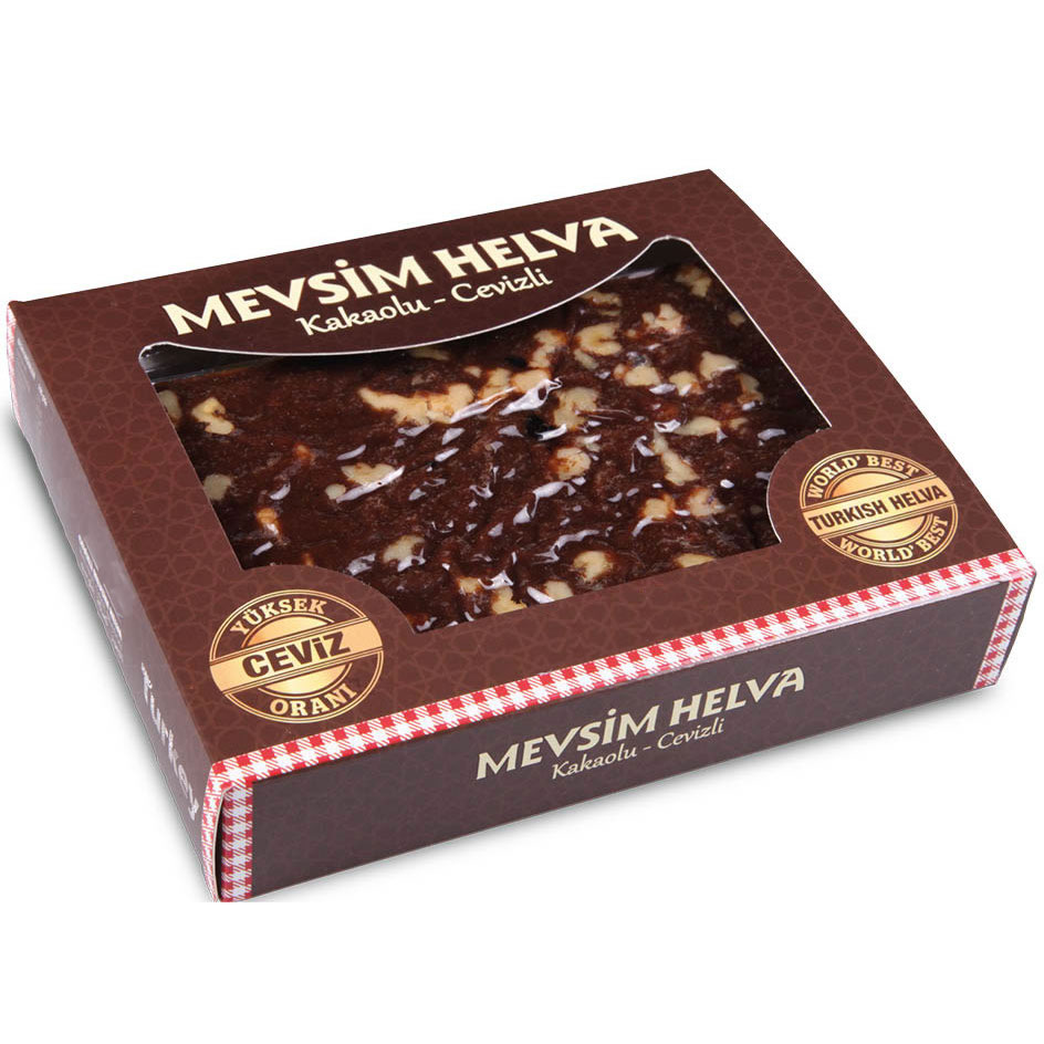 Seasonal Halva (with Cocoa and Walnut) is a unique version of traditional tahini halva, enriched with rich cocoa and crunchy walnut pieces. The cocoa adds a deep, satisfying flavor, while the walnuts bring texture and nutritional value. Perfect for dessert cravings or alongside tea, this halva is made with natural ingredients and contains no additives—an indulgent yet wholesome treat.