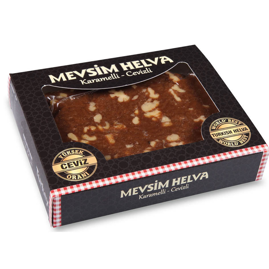 Seasonal Halva (with Caramel and Walnut) is a refined blend of traditional tahini halva, enriched with the deep flavor of caramel and the crunch of natural walnuts. The caramel adds warm, toasty notes, while walnut pieces enhance texture and richness. This halva is made with natural ingredients and contains no additives, offering a unique fusion of classic and modern flavors for sweet lovers.